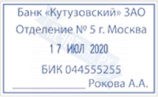 Поле: 50 х 30 мм, высота даты: 3 мм. Со встроенной окрашенной штемпельной подушкой синего цвета.