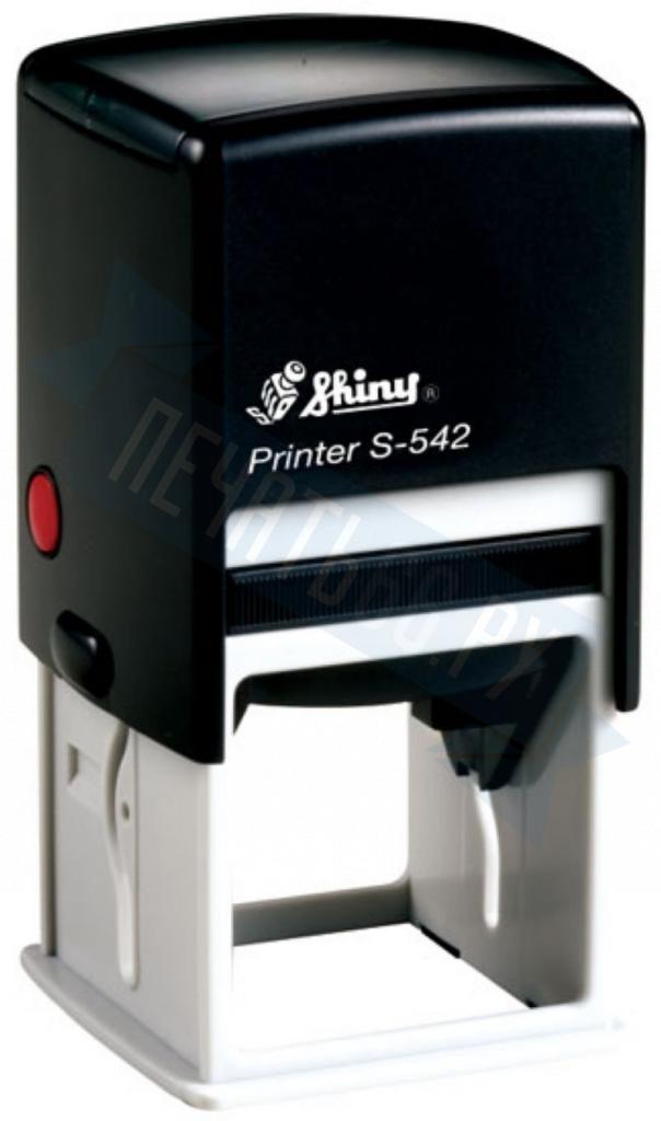 Автоматическая оснастка Shiny S-542. Размер поля: 42 х 42 мм. Штемпельная подушка: синяя.