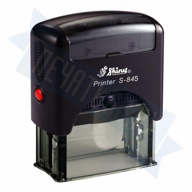 Автоматическая оснастка Shiny S-845. Размер поля: 70 х 25 мм. Штемпельная подушка: синяя.