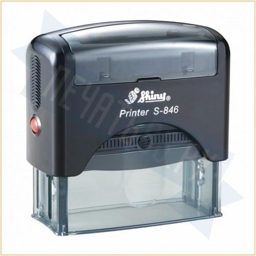 Автоматическая оснастка Shiny S-846. Размер поля: 65 х 27 мм. Штемпельная подушка: синяя.