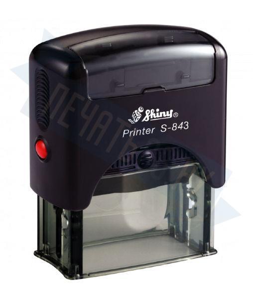 Автоматическая оснастка Shiny S-843. Размер поля: 47 х 18 мм. Штемпельная подушка: синяя.