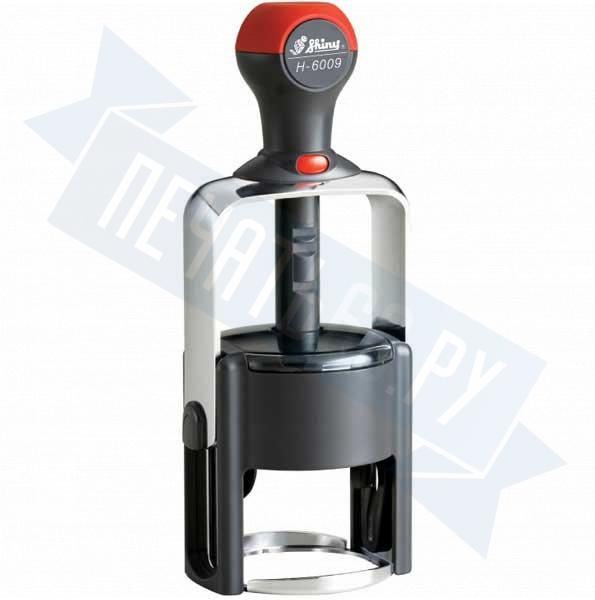 Автоматическая оснастка Shiny Duty H-6009. Диаметр поля: 45 мм. Материал корпуса: металл, пластик.Шемпельная подушка: синяя.
