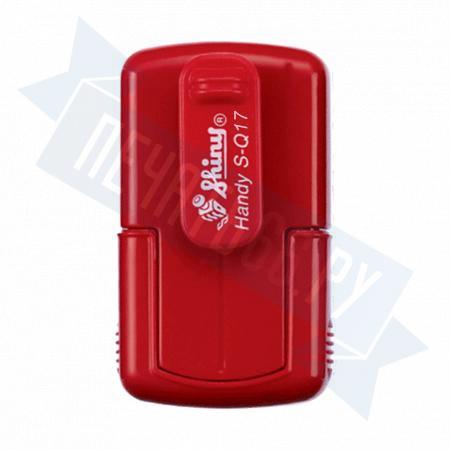 Карманная оснастка Shiny S-Q17. Размер поля: 17 х 17 мм. Штемпельная подушка: синяя.