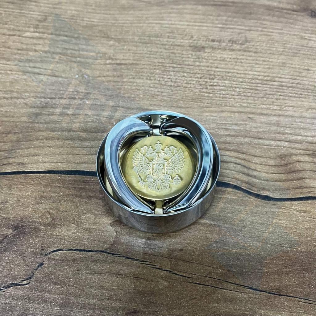 Печать ИП с логотипом на металлической оснастке Техно - Патриот Никель-Золото, 40мм