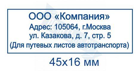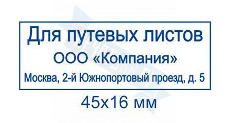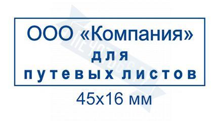 - Штамп для путевых листов на автоматической оснастке 47x18 по цене 998 рублей и еще 3 вида штампов для путевых листов